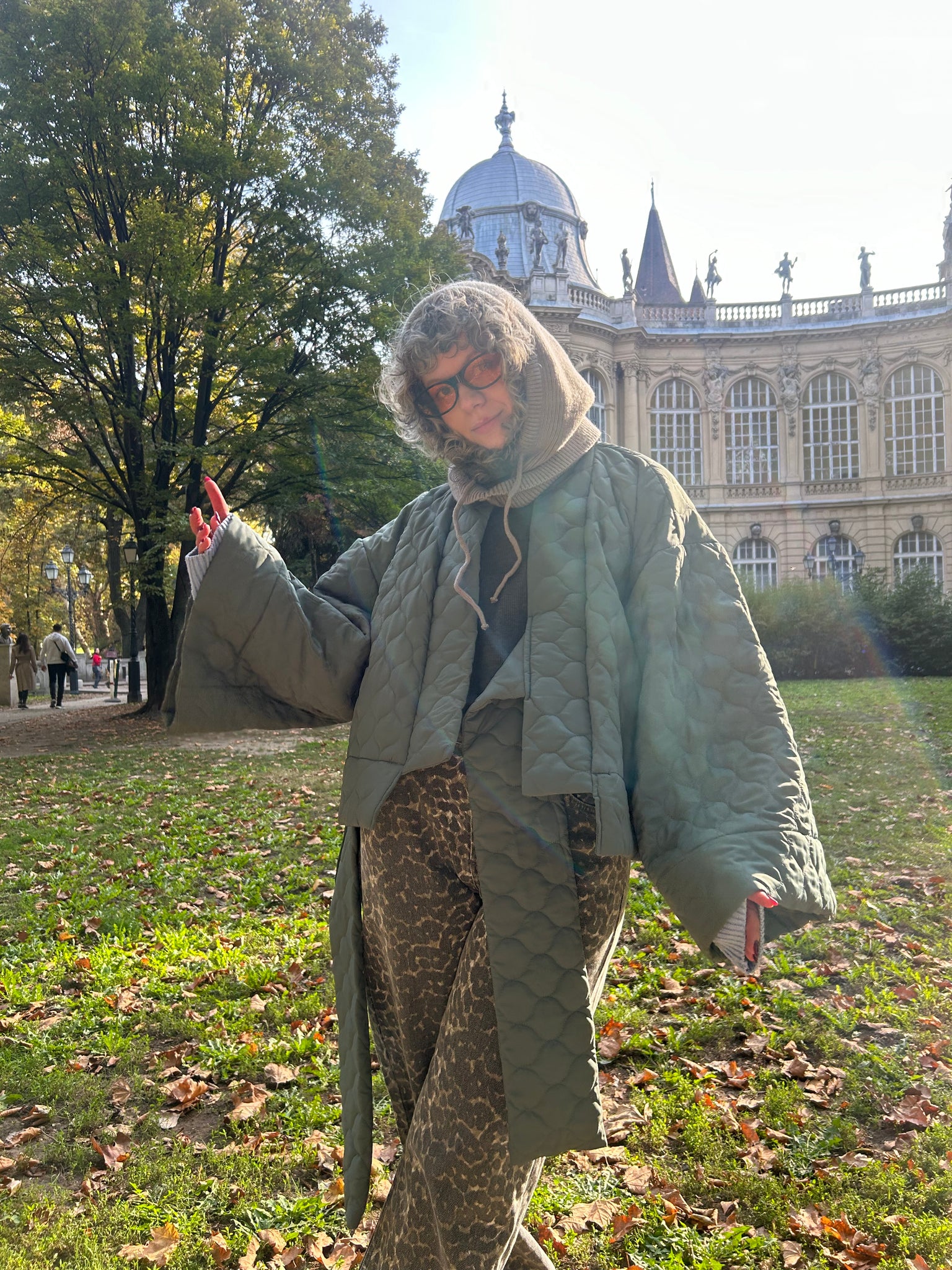 Ez nem egy átlagos praktikus kabát. Kimono ihletésű szabásával szép, nőies siluettet ad, azoknak, akik szeretik a divatot, de nem a túlzottan feltűnő stílust. Minimalista, elegáns és sokoldalú—tökéletes választás azoknak, akik hisznek a „kevesebb több” elvében.